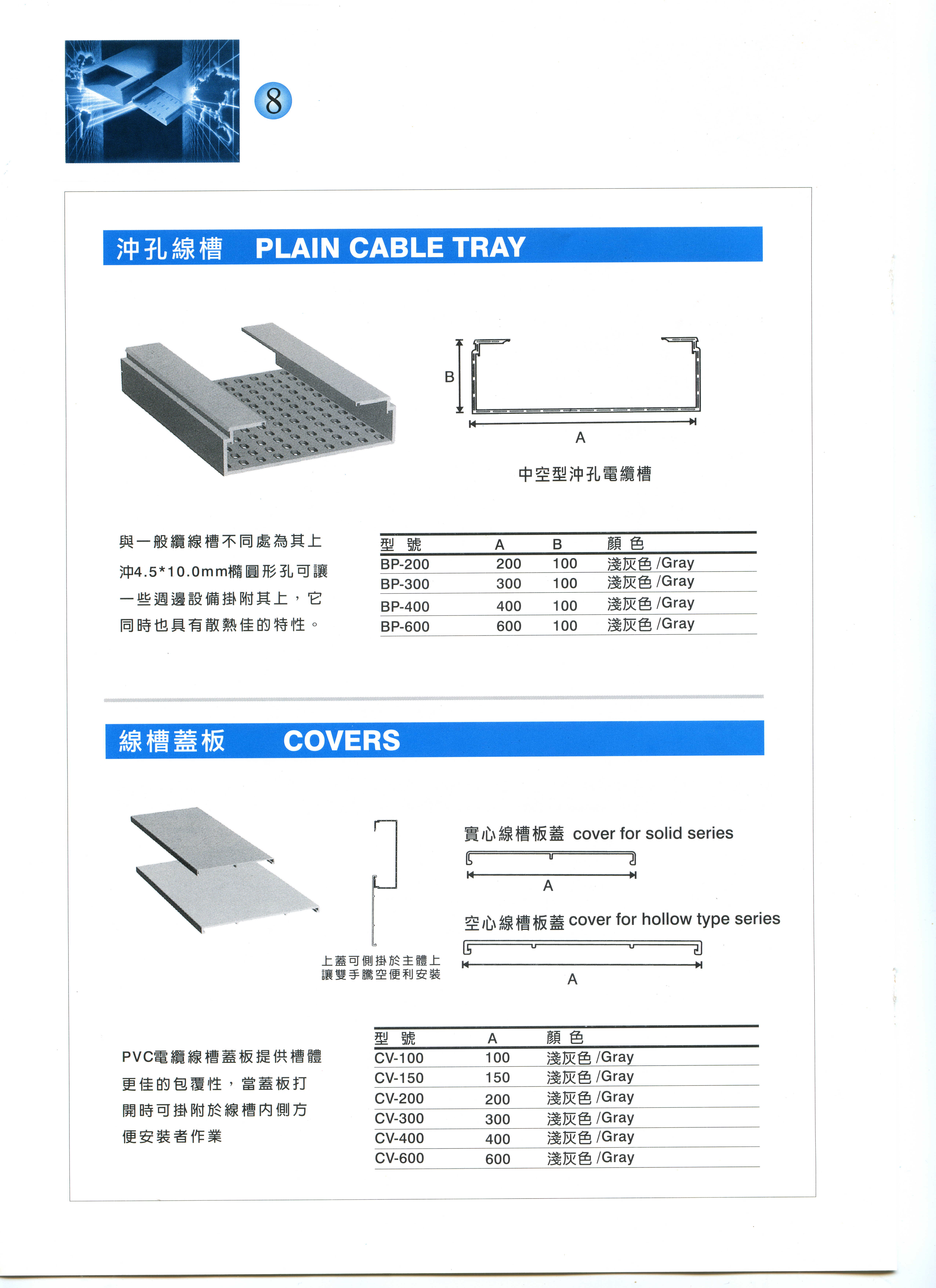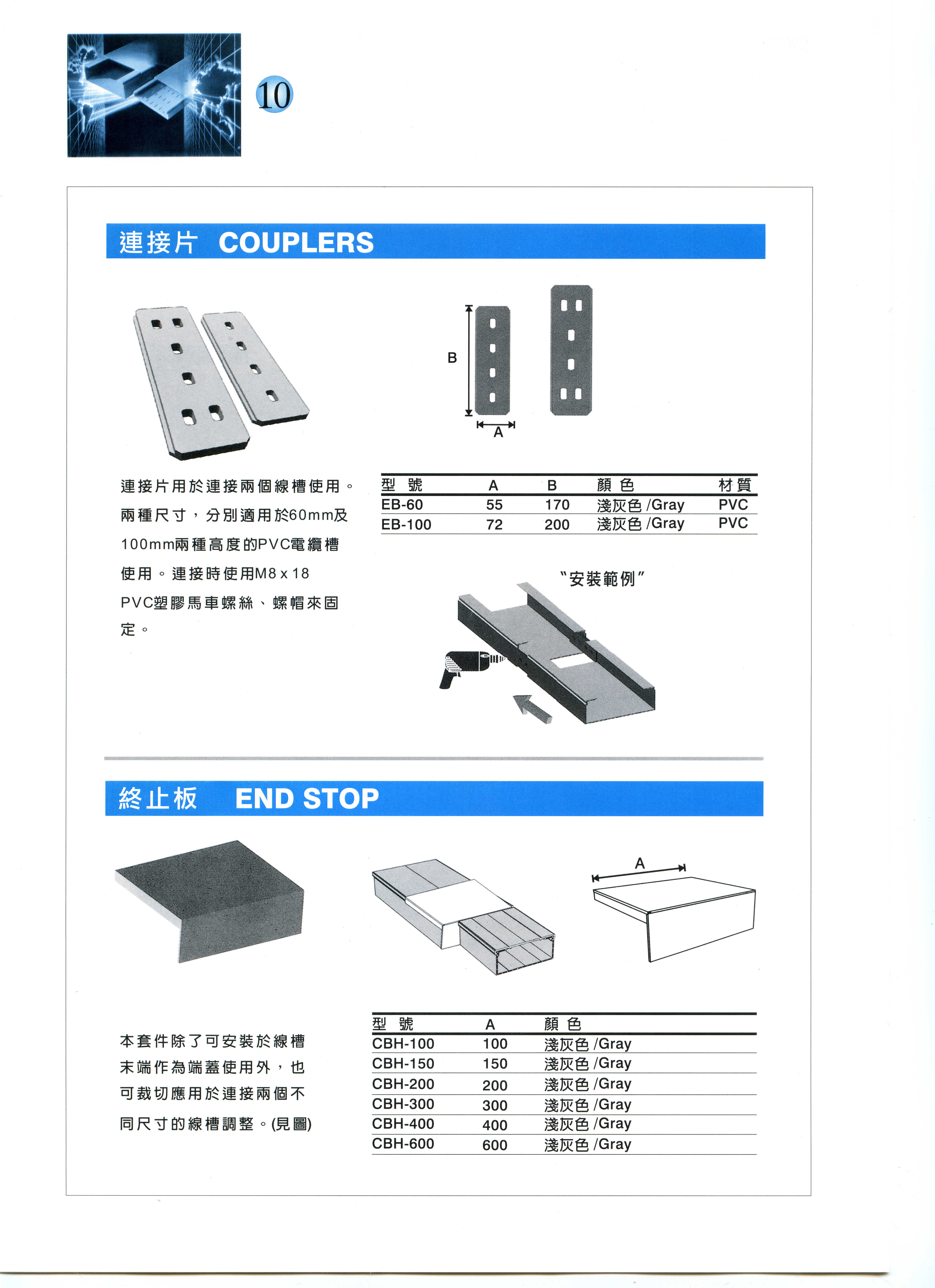 高強度PVC製成 , 可耐重壓 , 施工較為容易 , 標準顏色為淺灰色。